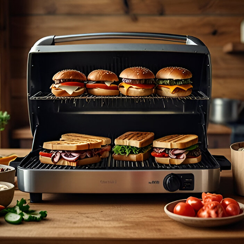 - Heavy-duty cast iron or non-stick grilling plates